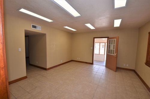 There are two main areas that could be used as office space or conference rooms, one office room, and a bathroom. There is even a kitchen with a refrigerator and oven, too. The building is a duplex and our office is conveniently on the other side. Off-street parking. High traffic area and just down the street from the Outlet Shoppes of El Paso. Easy access to I-10, Transmountain, and Doniphan. Lease this ideal office space before someone else does!