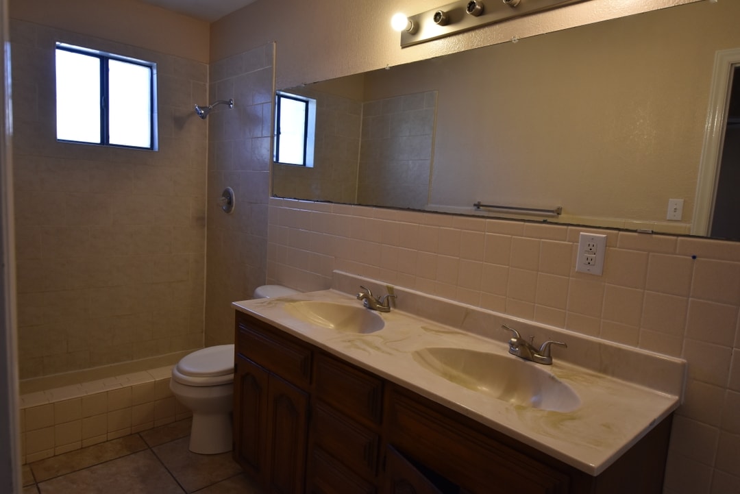 Ceramic tile through most ofthe home. The kitchen has dark wooden cabinets, a stove, and dishwasher. Separate dining area. Two of the bedrooms are downstairs. Upstairs has a master suite and two additional bedrooms. All of the upstairs bedrooms have wooden floors. Great location with easy access to the Bridge of the Americas, Patriot Freeway, and I-10.